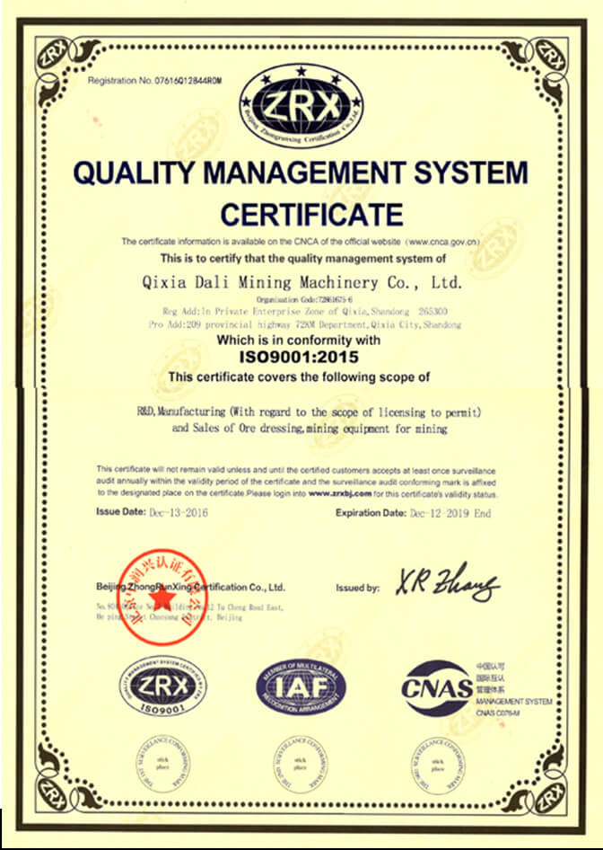 Qixia Dali Mining Machinery Co., Ltd was established in 1998, located in Yantai City.